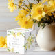 Des fleurs jaunes d'aquarelle délicates décorent cette belle boîte de mariage carré. La boîte de mariage du jardin est accentuée d'une douce bordure rectangle vert sauge et de feuilles botaniques sous les élégantes pivoines ensoleillées. Floral et léger, parfait pour une cérémonie en plein air.