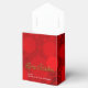Casse-noisette Trio-PARTY FAVOR BOX, style tente-Trois Casse-noix debout côte à côte sur un motif de bokeh rouge de Noël. Le premier casse-noix est habillé de bleu et de blanc avec des ornements dorés. Le biscuit central est habillé de rouge et d'or avec des ornements dorés. Le troisième casse-noix est habillé en vert et blanc avec des ornements en argent. Les noix de cou sont à l'avant et à l'arrière de la boîte avec une image en or qui dit : Joyeux Noël. Les deux pièces d'or peuvent être laissées telles quelles ou retirées si vous ne le voulez pas. Une zone de texte est en place en bas pour une note ou une signature personnalisée. Modifiez le texte blanc pour dire ce que vous voulez. Supprimez le texte s'il n'est pas voulu. Chacun de ces noix de cou est disponible séparément sur divers cadeaux et produits Zazzle. La coordination des cadeaux Zazzle et des fournitures de fête est disponible.