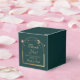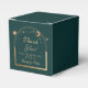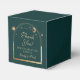 Celestial Green Soleil Soleil Lune Astronomie Mariage Favor Boxes dispose d'un élégant soleil doré, lune et étoiles avec un cadre doré sur un arrière - plan vert. A l'intérieur, il y a vos informations de remerciement de mariage personnalisées. Conçu pour vous par Evco Studio www.zazzle.com/store/evcostudio
