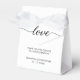 Célébrez l'amour et l'union à venir de la future mariée et du futur marié avec nos Ballotins Chic Love Script Custom Engagement Party. Ces ballotins personnalisés sont l'ajout parfait à votre fête de fiançailles, ajoutant une touche élégante et chic à la célébration. Customisez ces ballotins avec les noms du couple qui va être marié, ce qui les rend uniquement les leurs. Ajoutez un message spécial pour express vos souhaits sincères et l'excitation pour leur voyage ensemble. N'oubliez pas d'ajouter la date de la fête de fiançailles, en faisant de ces boîtes un merveilleux souvenir de la journée spéciale. La pièce maîtresse de ces ballotins chics est le mot "Amour" écrit dans une police de caractères moderne. Il saisit magnifiquement l'essence de l'occasion et l'amour partagé entre le couple. Tout cela avec une touche de sophistication et de romantisme. Choisissez parmi différentes options de couleurs arc pour compléter votre thème de fête et créer un look cohésif qui correspond à votre décor d'événement. Nos ballotins de fiançailles sont non seulement élégants mais aussi pratiques. Remplissez-les de délicieuses gâteries ou de petits cadeaux pour remercier vos invités de se joindre à la célébration de votre amour. Élégant, simple et chic, nos Ballotins Chic Love Script Custom Engagement Party sont l'ajout parfait à votre fête de fiançailles, fournissant une touche mémorable et spéciale qui sera apprécié par vos invités.