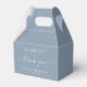Chic boîte de faveur de mariage bleu poussiéreux avec "un gentil merci" en typographie simple et un élégant script blanc avec des swashes, vos prénoms unis par un coeur et votre date mariage.