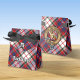 Clan MacFarlane crête badge entouré d'une sangle et boucle sur le tartan habillé. Texte et monogramme personnalisés.