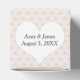 Cœur blanc avec les noms des jeunes mariés sur un motif de cœur rose fardé.