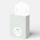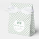 Avec sa sauge verte classique en vichy motif, ce ballotin s'harmonise parfaitement avec la collection de baby showers Lea Delaveris Design en vichy. Les points correspondent à l'adorable cravate arc qui se trouve à propos du texte personnalisé. Ce ballotin est parfait pour n'importe quel baby shower garçon de cravate arc et fonctionne aussi bien pour un baptême.