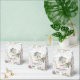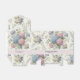 A wedding favor box featuring delicate hydrangea flowers in shades of dusty rose, light purple, and blue.