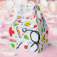 Une boîte créative de fête sur le thème de la médecine qui comprend des fournitures médicales et des fleurs pour la célébration du médecin, de l'infirmière, de l'assistante médicale ou d'un autre professionnel de la santé.