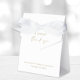 Boîte de faveur de douche de mariage blanc chic avec "Un doux merci" dans un script or moderne et une typographie sérif or élégante, le nom de la mariée et la date de la douche.