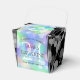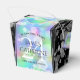 Fêtez leur 24e anniversaire de mariage opal avec ces ballotins élégants ! Des lettres élégantes avec des confettis hexagonaux sur un arrière - plan opal irisé bordé de barres noires ajoutent une touche mémorable à cette occasion spéciale et à cette étape extraordinaire. Le panneau inverse affiche un design identique. Customisez avec le nom du couple, la date du mariage et les messages. Design © W.H. Sim. Voir plus sur zazzle.com/expressionsoccasions