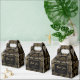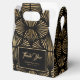 Élégante boîte de faveur de mariage à motifs noir et or avec feuilles de palme noir et or. Personnalisez facilement ces boîtes de faveur de mariage avec vos détails d'événement. Nos boîtes de faveur de mariage de luxe sont parfaites pour votre mariage noir et or élégant et d'autres occasions. Ces ballotins de remerciement personnalisés peuvent être customisés à d'autres occasions, comme des douches nuptiales, des fêtes d'anniversaire, des baby showers et plus encore.