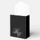 Ces belles boîtes de faveur de mariage sont parfaites pour vos faveurs de mariage. Il présente vos initiales dans un élégant script blanc et à l'arrière est vos noms et date mariage sur une boîte noire.