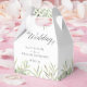 Un élégant ballotin de mariage avec des feuilles délicats de verdure aquarelle encadrant votre message de remerciement dans la typographie moderne. Vous pouvez personnaliser avec votre propre message de remerciement au contraire. Une façon parfaite de remercier vos invités ! Conçu par Thisisnotme©