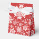 Dress up your holiday gifts and party favors with this festive red favor box featuring an elegant white snowflake pattern.