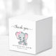 Des boîtes-cadeaux très sympa pour votre petite fille douche avec "merci" et "Une petite arachide douce est en route" écrites dans un mélange de typographie gris mou et un script élégant avec des cils et une aquarelle rose pastel d'un bébé éléphant. Personnalisez le nom et la date de la douche de la future mère dans une simple typographie grise.