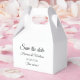 Save the Date, script personnalisé, calligraphie texte Mariage élégant, mignon et drôle ballotins. Script entièrement personnalisable texte noir et blanc arrière - plan de couleur unie.