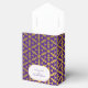 Un magnifique motif de mosaïque géométrique marocain ethnique violet et or. Le design marocain décoratif parfait. Boîte de faveur idéale pour toute occasion. Personnalisez simplement le texte pour l'adapter à votre événement et à votre nom.