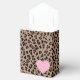 Boîte de Faveurs de Fête Rose et Léopard. Cœur blanc à l'avant pour écrire le nom de chaque invité ! Parfait pour une Baby Shower, un Anniversaire, un Enterrement de Vie de Jeune Fille et plus encore !