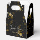 Un ballotin d'anniversaire moderne, élégant et glamour. Ce design est caractérisé par un "Merci" de typographie dynamique avec un bokeh en dégradé d'or sur un arrière - plan noir. Personnalisez et ajoutez les détails de votre fête.