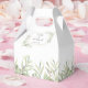 Boîte de faveur de mariage aux feuilles de verdure douce élégante avec des feuilles aquarelles délicates encadrant votre message de remerciement dans une typographie moderne. Vous pouvez personnaliser avec votre propre message de remerciement au verso. Un moyen parfait de dire merci à vos invités ! Conçu par Thisisnotme