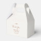 Ce boho crème minime en feuille remercient la boîte de faveur de mariage est parfait pour une réception de mariage boho. Le design se compose d'une simple silhouette de feuille de verdure en orange brûlé terreux sur un arrière - plan crème au style bohème minimaliste du désert. Personnalisez les ballotins avec vos noms, l'événement (le cas échéant) et la date. Ces ballotins peuvent être utilisés pour une réception de mariage, une douche nuptiale ou tout événement!