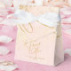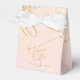Un arrière - plan d'aquarelle dans les tons or rose est surmonté d'une abstraite de lignes dorées fines et d'effets lumineux scintillants pour créer les pièces de cette belle suite mariage. Le ballotin mariage "Merci" présenté ici présente également la calligraphie "Merci" ainsi que les noms de la mariée et du marié et la date du mariage. Recherchez ID867 pour voir d'autres pièces et choix de couleurs pour cet ensemble.