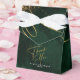 Un arrière - plan d'aquarelle dans les tons vert émeraude est surmonté d'une abstraite de lignes dorées fines et d'effets lumineux scintillants pour créer les pièces de cette belle suite mariage. Le ballotin mariage "Merci" présenté ici présente également la calligraphie "Merci" ainsi que les noms de la mariée et du marié et la date du mariage. Recherchez ID867 pour voir d'autres pièces et choix de couleurs pour cet ensemble.