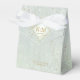 Un arrière - plan d'aquarelle dans les tons vert sauge est surmonté d'une abstraite de lignes dorées fines et d'effets lumineux scintillants pour créer les pièces de cette belle suite mariage. Le ballotin mariage "Merci" présente également un cadre en forme de losange dégradé pour tenir les initiales de la mariée et du marié et la date du mariage. Ajoutez un message de remerciement personnel en utilisant le modèle fourni. Recherchez ID867 pour voir d'autres pièces et choix de couleurs pour cet ensemble.