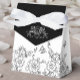 Un simple ballotin mariage, noir et blanc. Customisez avec vos initiales. Fleur de lis d'origine avec fleurs de printemps, feuilles et papillons dessin et design à la main par Sarah Trett pour www.mylittleedenweddings.com