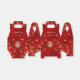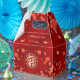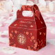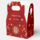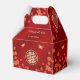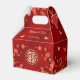 Branches en fleurs de cerisier rouge et un double symbole de bonheur doré sur un arrière - plan brillant rouge rubis. Noms de mariée et de mariée personnalisés dans un élégant script classique sur l'avant et l'arrière. Voici une boîte à donner au couple.