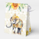 Mariage indien haldi orné éléphant haldi prémariage faveur cadeau élégant ballotin, joliment décoré éléphant indien fleurs jaunes or cloches d'aquarelle moderne coloré Haldi ballotins