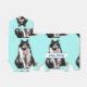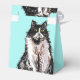 Boîte à gâteau turquoise d'anniversaire de chats noir et blanc Tuxedo Cat. Un produit magnifique réalisé à partir de mes peintures aquarelles originales.