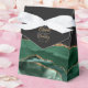 Cet élégant ballotin moderne présente une aquarelle vert émeraude et un design orné d'une fausse parties scintillant dorée. Personnalisez-le avec les noms de la mariée et du marié en écriture manuscrite de couleur or sur une grande esperluette grise sur un arrière - plan noir en ardoise, avec la date du mariage ci-dessous.