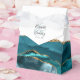 Cet élégant ballotin moderne présente un design turquoise d'agate d'aquarelle bleue orné d'une fausse parties scintillant dorée. Personnalisez-le avec les noms du couple dans le script d'écriture manuscrite gris charbon sur une grande esperluette bleu turquoise sur un arrière - plan blanc, avec la date mariage ci-dessous.