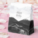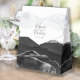 Cet élégant ballotin moderne présente un design d'agate d'aquarelle noire, orné d'une fausse parties scintillant argentée. Personnalisez-le avec les noms de la mariée et du marié dans le script d'écriture manuscrite gris fusain sur une grande esperluette grise sur un arrière - plan blanc, avec la date du mariage ci-dessous.