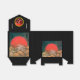 Elégante pierre de rubis, paysage saisonnier coloré avec soleil rouge, vagues de mer dans des couleurs vives noir, marron, blanc retravaillé d'une miniature japonaise antique. Amaterasu fait partie du cycle du mythe japonais et est aussi une divinité majeure de la religion shintoise. Elle est la déesse du soleil, mais aussi de l'univers. Le nom Amaterasu dérivé d'Amateru signifiant "brillant dans le ciel". Le sens de son nom tout entier, Amaterasu-ōmikami, est "le grand Août kami (dieu) qui brille dans le ciel".Car Amaterasu est aussi crédité d'avoir inventé la culture du riz et du blé, l'utilisation de vers à soie et le tissage avec le métier à tisser.