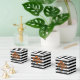 Petites boîtes de remerciement de baby shower imprimées avec des rayures de goth en noir et blanc, et un design de remerciement sur le thème de l'Halloween avec un script orange audacieux, un citrouille sculpté souriant joyeusement aux invités du baby shower, et de petites chauves-souris mignonnes. Inscrivez-vous avec votre nom et le nom ou le surnom de votre petit livre qui est presque dû! Le texte noir est personnalisable et les ballotin fonctionnent aussi bien pour tout autre type d'événement sur le thème de l'Halloween, comme une douche nuptiale d'Halloween, mariage d'Halloween, fête d'anniversaire d'Halloween et fête costumée d'Halloween.