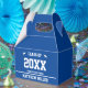 Ce ballotin bleu et blanc foncé dit "Classe de 2023" en gros texte blanc. (Vous pouvez modifier l'année si nécessaire.) En bas, il y a un texte blanc que vous pouvez modifier pour afficher le nom correct pour le diplômé. Les casquettes de la diplômée blanche sont de chaque côté de l'expression "Classe de". Vous pouvez également modifier le message personnalisé pour vos invités. (Montré : Merci À Venir)