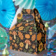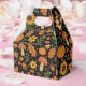 A decorative and cozy fall pattern! This cute design is hand drawn and digitally illustrated, featuring a charming medley of pumpkins, sunflowers, leaves, and mushrooms on a stylish black background. It perfectly captures a charming woodland harvest look with a vintage-inspired, rustic texture.