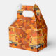Le design d'automne amusant comprend un pick-up orange pâle rempli de trois citrouilles contre un mélange de feuilles d'automne arrière - plan. Tailgate lit Happy Fall Yall.