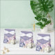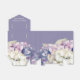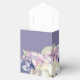 Cette boîte à cadeau de mariage romantique présente un design floral à l'aquarelle avec des hydrangeas violettes et blanches sur un fond de couleur lavande. Des bouquets délicats de fleurs d'hydrangea sont représentés autour de la partie inférieure.