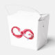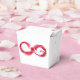 Infinity symbole of continuous stream of red pouring into glass glass glass on white background.