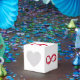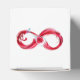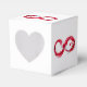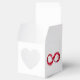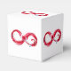 Infinity symbole of continuous stream of red pouring into glass glass glass on white background.