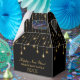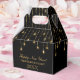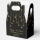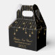 Joyeux Ballotin Gold et Black String. Ce design est doté d'élégantes lampes à cordes dorées avec les mots Bonne Année. Personnalisez ce design personnalisé avec votre nom de famille, votre année et votre salutation de célébration personnalisée. Parfait pour une soirée de réveillon du Nouvel An !