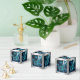 Pacock masquerade fête de faveur boîte. Belle boîte de fête de mascarade argent et bleu royal avec beau masque de plumes bleu turquoise sur un élégant arrière - plan de plumes de paon bleu.