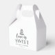 Emballez un grignotage de gâteau mariage ou d'autres douceurs avec ces boîtes de faveur de mariage personnalisées. Design présente une illustration de gâteau mariage de style vintage avec "l'amour est doux" dans le script de calligraphie et la typographie de bloc. Customisez ces ballotins noirs et blancs fantaisistes mais élégants avec vos noms et date mariage.