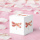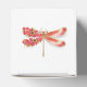 Artiquement dessiné, or, libellule bijouée de rouge et ailes décorées de rouge, fleurissant, cerise japonaise bijouée sur arrière - plan blanc. La libellule d'or.