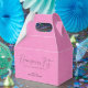 Boîte de faveur de mariage pour kit de passe-temps, minimaliste fantaisie moderne, personnalisable typographie de script blanc. L'arrière - plan de texture de lin imprimé rose et bleu apporte une touche d'ambiance organique et d'élégance classique. D'autres couleurs sont disponibles.