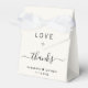 Elégante boîte de mariage crème légère avec "Love + Thanks" en typographie moderne simple et un script chic avec des swashes, vos prénoms unis par un coeur et votre date mariage.