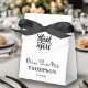 Faites de votre mariage une journée inoubliable avec M. et Mme Elegant Simple | Ballotin noir & blanc, personnalisé avec votre nom de famille et votre date de mariage. Cette élégante ballotin ajoute une touche de sophistication à votre grand jour.