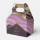 Vous obtenez à la fois le glamour et l'impact élevé avec cet ensemble de mariage de coordination qui comprend des motifs d'agate abstraits, texturés avec des faux cristaux et des reflets dans un film d'or scintillant. Des combinaisons de couleurs éclatantes, comme cette suite avec sa palette de luxe allant du raisin muté et du mauve au rose doux orchidée, créent l'arrière - plan pour les pièces de cet ensemble coordonné. Cette boîte de faveur de mariage comprend tous les éléments ci-dessus ainsi que la calligraphie élégante 'Amour et Merci', un étiquette semi-transparent pour tenir votre texte et un modèle pour ajouter facilement vos noms et date mariage. Affichez le lien de collection sur cette page pour voir tous les éléments correspondants dans cette belle conception ou recherchez ID827 pour voir des choix de couleurs supplémentaires.