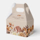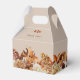 Cet élégant ballotin mariage de automne présente des feuilles d'aquarelle peinte à la main en orange brûlé et en terre cuite, des dahlias crème et beige, et de beaux roses de couleur rouille sur un arrière - plan taupe avec le nom de la mariée et du marié et la date du mariage en texte marron. Trouvez les articles correspondants dans la collection Taupe Autumn Romance.